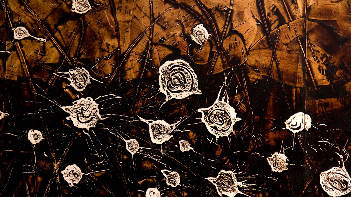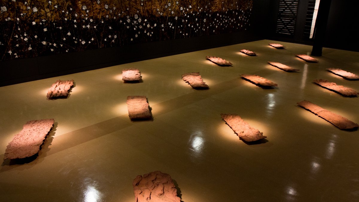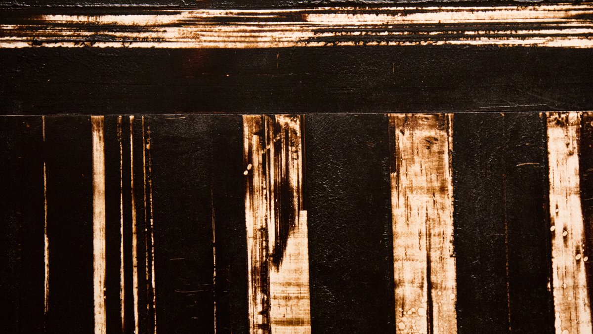First installed at the Contemporary Art Museum in Raleigh, North Carolina, White Gold is composed of four large-scale works occupying 2,000 square feet of gallery space. One work, Tracks 1-18, features artist Thomas Sayre’s signature earth-casting process, in which he pours concrete into molds in the land itself. The other three works, Thicket 1-14, Row 1-10, and Barn 1-3, are two-dimensional renditions achieved with earth, tar, paint, and the artist’s labor; the physical act of smearing, scraping, and rubbing.