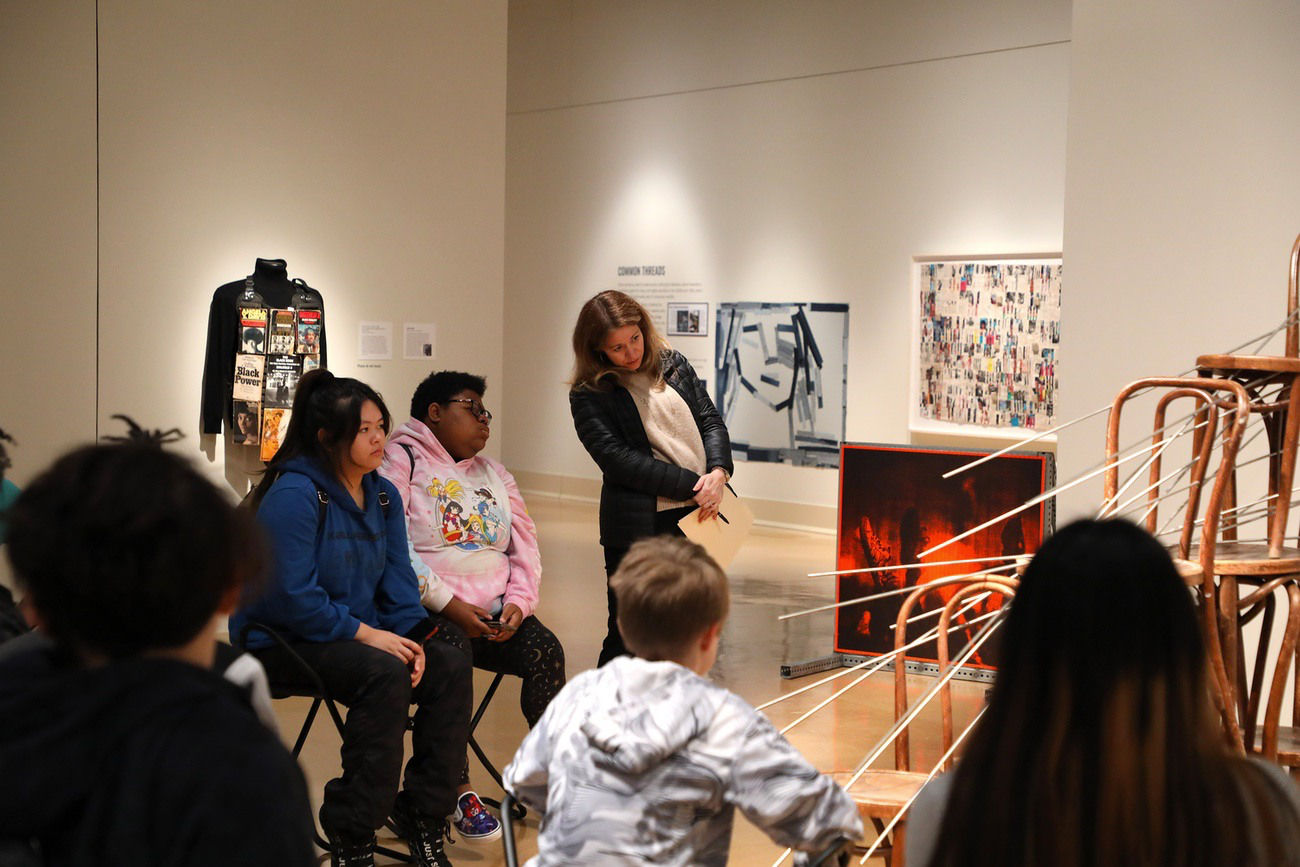 Guided tours involve looking closely at the work of art followed by a facilitated conversation, allowing viewers to make discoveries about the art. Background information about the artist and the historical and cultural context of the work will be woven into the conversation by your trained gallery educator. These tours access the viewer’s prior knowledge and help validate each person’s individual perspective, while encouraging moments of deep thought and self-discovery.
