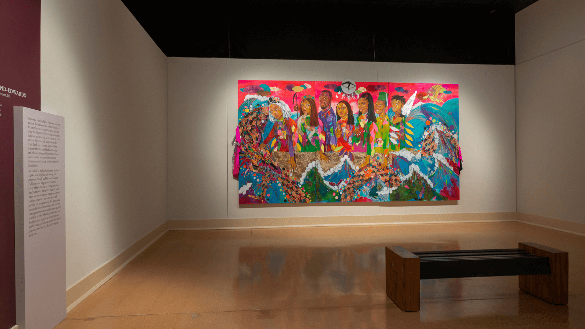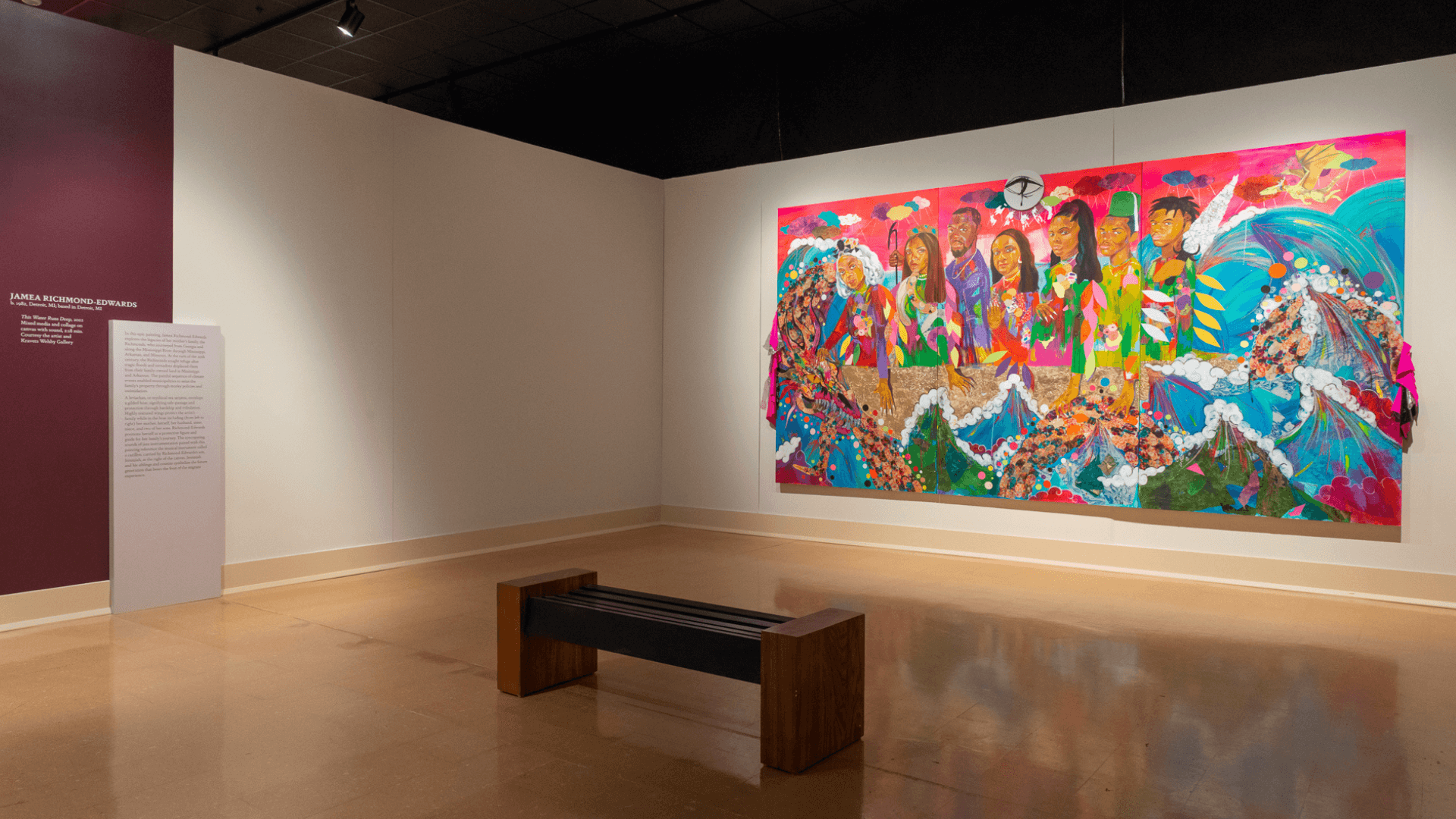 Jamea Richmond-Edwards (b. 1982), "This Water Runs Deep," 2022. mixed media and collage on canvas with sound, 2:18 min. 96 x 180 in. Courtesy the artist and Kravets Wehby Gallery. TGM14. Photography by Mitro Hood. Courtesy of the Mississippi Museum of Art and Baltimore Museum of Art.